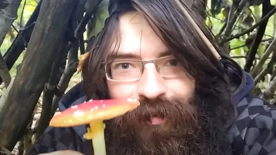 W filmie pt. Jem PRAWDZIWEGO Muchomora w moim Szałasie w Lesie | Amanita Muscaria zademonstrował internautom, jak pałaszuje muchomora – w dodatku surowego.