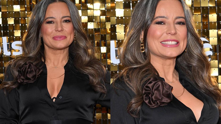 Anna Mucha pojawiła się na "Tańcu z Gwiazdami" w stylizacji łączącej elegancję z odważnym akcentem. Założyła czarną, satynową koszulę z głębokim dekoltem w kształcie litery V, którą ozdobiła dużą, brązową aplikacją kwiatową przy ramieniu. Talię podkreślał szeroki, czarny pas, a dół kreacji stanowiła rozłożysta spódnica maxi z tiulu w odcieniu ciemnego brązu, nadająca stylizacji objętości. Do całości dobrała delikatne złote bransoletki, pierścionek z wyraźnym kamieniem oraz długie kolczyki. Jej długie, szare włosy były ułożone w miękkie fale, a makijaż podkreślający oczy i usta dopełnił całą stylizację aktorki.